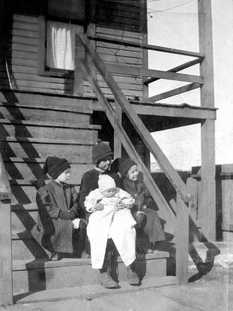 The Campbell children at the home at 79th and Escanaba, Chicago. Katheryn was born here in August 1910, so the photo dates from 1911.